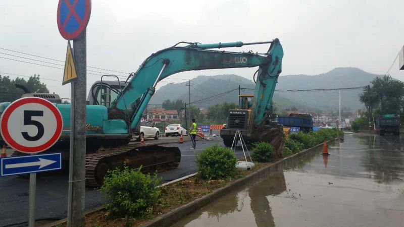 人員部署完畢,當(dāng)晚19:00,烏云密布,狂風(fēng)怒吼。兩組負(fù)責(zé)人帶領(lǐng)挖掘機(jī)、裝載機(jī)及各值班人員到達(dá)現(xiàn)場(chǎng)。姚慶敏經(jīng)理高度重視,親臨一線指揮防汛工作,在現(xiàn)場(chǎng)要求大家要以“以汛為令、眾志成城、集中精力、各負(fù)其責(zé)”以“北博山中橋便道被毀壞事件”為戒,全力以赴防汛排澇,保障居民財(cái)產(chǎn)安全。