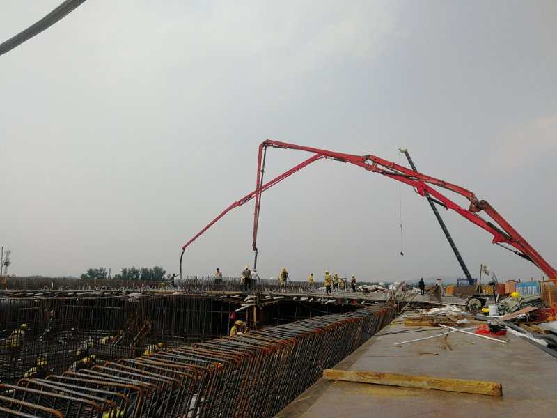 本次澆筑的轉(zhuǎn)體現(xiàn)澆梁長24米, 整幅橋面寬30.7米。箱梁采用三向預(yù)應(yīng)力體系,大懸臂單箱三室斜腹板箱型截面,設(shè)計混凝土方量739立方;2#節(jié)段的施工完成為剩余3#節(jié)段的施工提供了保障,目前7月份轉(zhuǎn)體計劃已上報濟(jì)南局集團(tuán)公司審批,本次2#節(jié)段的順利澆筑,為后續(xù)7月份轉(zhuǎn)體施工奠定了基礎(chǔ)。