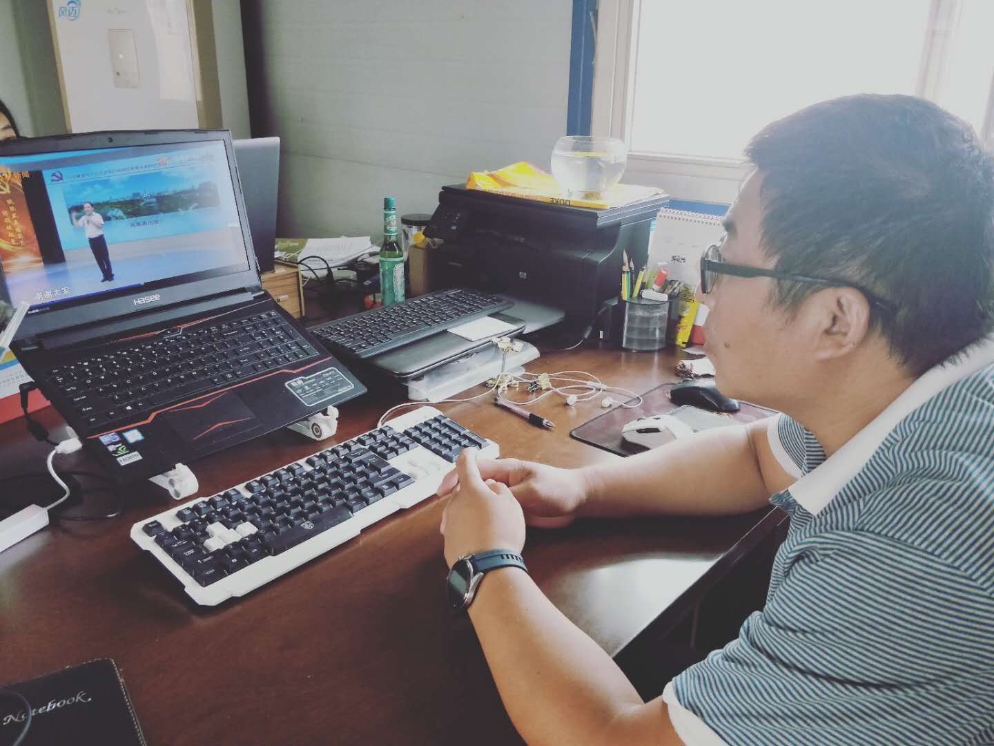 第三工程公司黨支部八月工程大干期間,因成員分散在各施工項目,8月10日抓住時機利用網(wǎng)絡視頻學習微黨課搞起主題黨日活動,支部全體黨員接到通知后同步使用手機和筆記本電腦,觀摩學習淄博電視臺新聞頻道淄博黨建微黨課決賽,學習防疫抗疫一線先進使勁。