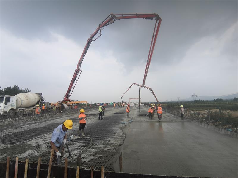 澆筑前,項(xiàng)目部組織召開(kāi)興隆莊特大橋現(xiàn)澆箱梁澆筑專題會(huì)議,從鋼筋綁扎、模板安裝、混凝土原材料檢驗(yàn)質(zhì)量控制及配合比優(yōu)化、機(jī)械設(shè)備和人員配置等方面做了充分的準(zhǔn)備工作。制定值班表,落實(shí)領(lǐng)導(dǎo)帶班、技術(shù)人員全程盯控管理。同時(shí),安排12輛混凝土罐車趕赴施工現(xiàn)場(chǎng),保證混凝土澆筑任務(wù)。在施工現(xiàn)場(chǎng),2臺(tái)泵車同時(shí)澆筑,循環(huán)作業(yè),大大節(jié)約了施工時(shí)間,保證混凝土澆筑質(zhì)量。各部門各司其責(zé),全員待命,充分發(fā)揮拼搏、奉獻(xiàn)的企業(yè)精神。