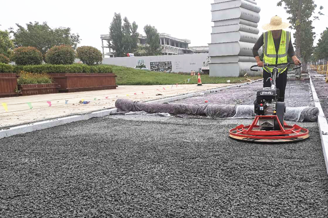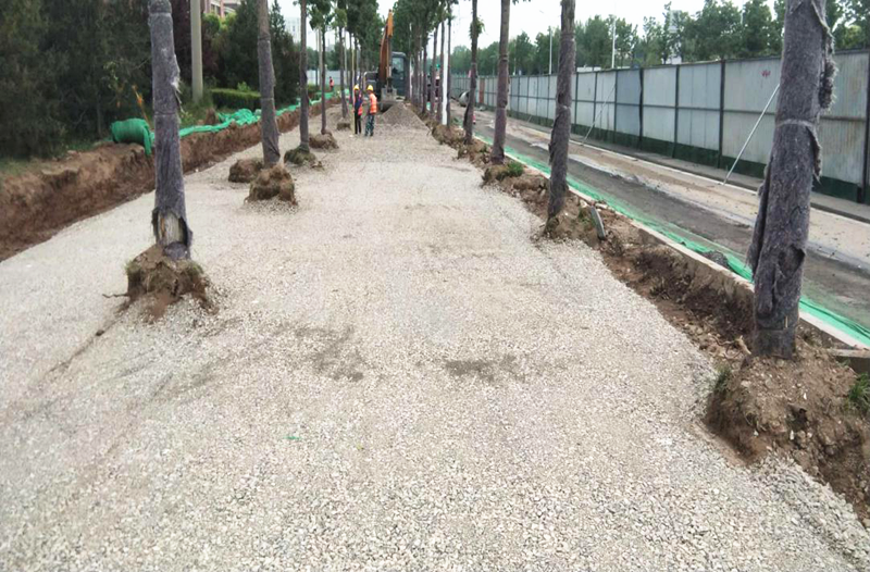 24日,路緣石安裝完成,為防止在攤鋪瀝青面層造成污染,為路緣石覆蓋薄膜↓