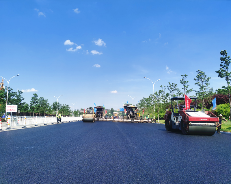 10日,中潤(rùn)大道項(xiàng)目全線首家全幅瀝青鋪設(shè)完成↓