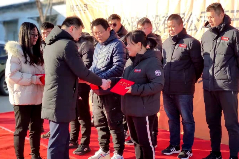 考慮到當下疫情防控工作,會議在魯中公路淄川拌合站院內(nèi)召開,分公司經(jīng)理為十三位標兵送上誠摯的祝賀并當場頒發(fā)榮譽證書和獎勵紅包。標兵代表發(fā)言向所有領(lǐng)導、同事表達感謝,感謝大家一年來的無私協(xié)作和支持,同時向第三工程公司全體員工發(fā)出勠力同心再戰(zhàn)2021的倡議。