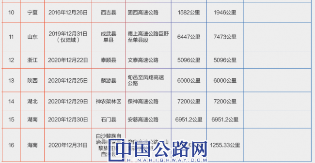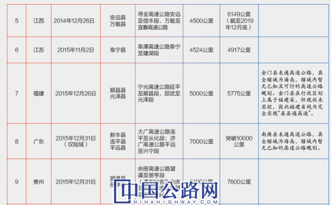 全國“縣縣通高速”省份一覽表