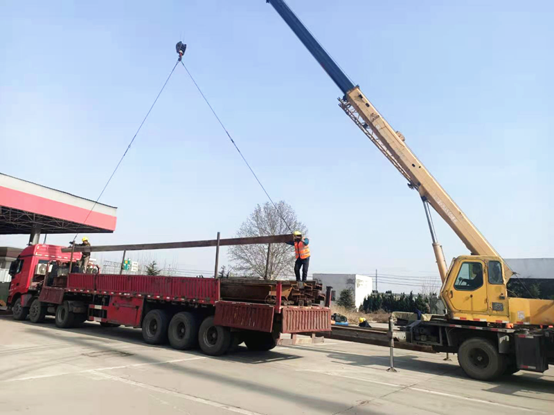 預制場工字鋼和龍門道軌進場卸車安裝