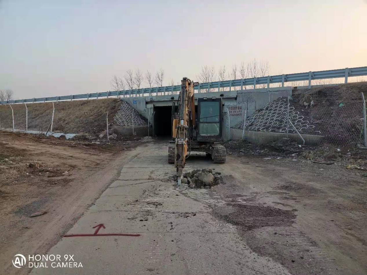 K700+635.187機耕通道的高速被交道改路正在進行老路面破除。