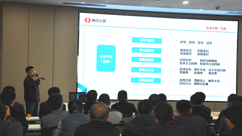 在課程開(kāi)講之前,公司總經(jīng)理呂志勇首先為“魯中公路學(xué)堂”開(kāi)課致辭。呂總在致辭中講到:當(dāng)前我們所面臨的市場(chǎng)環(huán)境和行業(yè)形勢(shì)發(fā)生了深刻而巨大的變化,只有全面、客觀的認(rèn)識(shí)當(dāng)前的市場(chǎng)行業(yè)形勢(shì),對(duì)市場(chǎng)發(fā)展有準(zhǔn)確的認(rèn)知與判斷,對(duì)未來(lái)懷有危機(jī)感,才能有針對(duì)性的做出應(yīng)對(duì)措施,立足本行業(yè)。而如何做到適應(yīng)行業(yè)變化,則取決于各級(jí)領(lǐng)導(dǎo)干部的素質(zhì)和企業(yè)核心競(jìng)爭(zhēng)力。今天在場(chǎng)的各位都是魯中公路當(dāng)前的骨干員工和重要干部,也是未來(lái)即將擔(dān)當(dāng)大任的干部。作為企業(yè)干部必須要做到“五有”:有學(xué)習(xí)能力、有市場(chǎng)意識(shí)、有敬業(yè)精神、有專業(yè)水準(zhǔn)、有思想境界。要在今后的工作中,不斷提升學(xué)習(xí)能力,樹(shù)立市場(chǎng)意識(shí),培養(yǎng)敬業(yè)精神,強(qiáng)化專業(yè)水準(zhǔn),提高思想境界,增強(qiáng)綜合素質(zhì),持續(xù)打造魯中公路的核心競(jìng)爭(zhēng)力,共同促進(jìn)公司更好發(fā)展,為社會(huì)做出更大貢獻(xiàn),為員工謀取更多福利。
