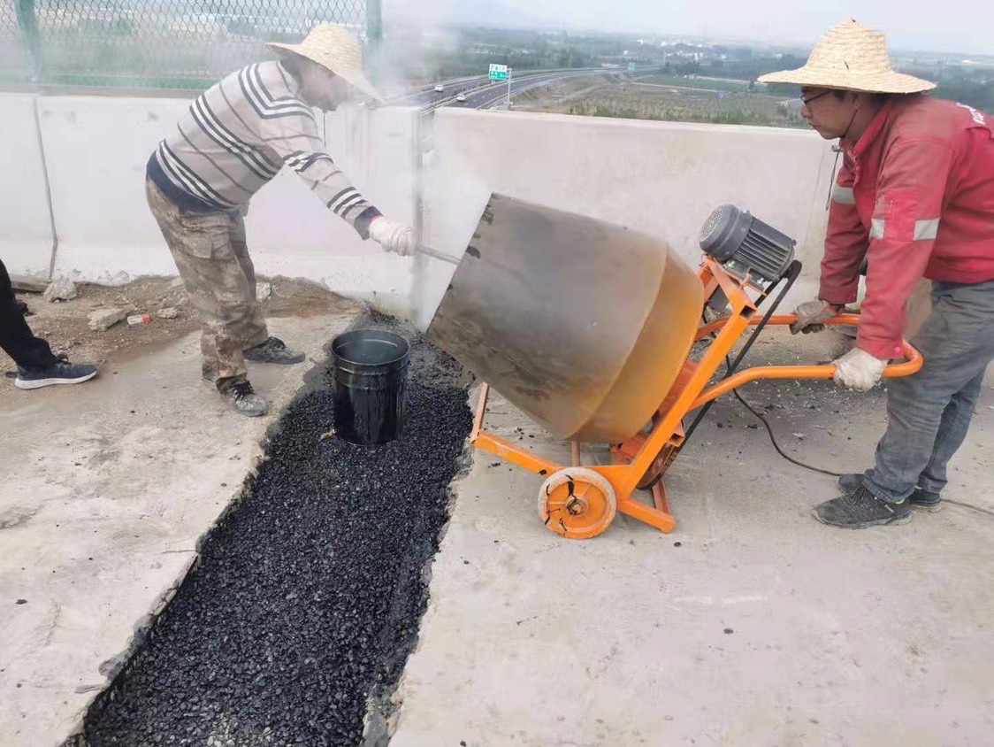 在經(jīng)過有序的準備之后,現(xiàn)場施工人員充滿干勁于5月4日上午7:00整,對最后兩道天橋TST伸縮縫正式開始施工?,F(xiàn)場切割機、TST混合料攪拌鍋等施工設(shè)備緊密配合,施工人員嚴格按照工藝要求進行施工,做到施工標準化、規(guī)范化。