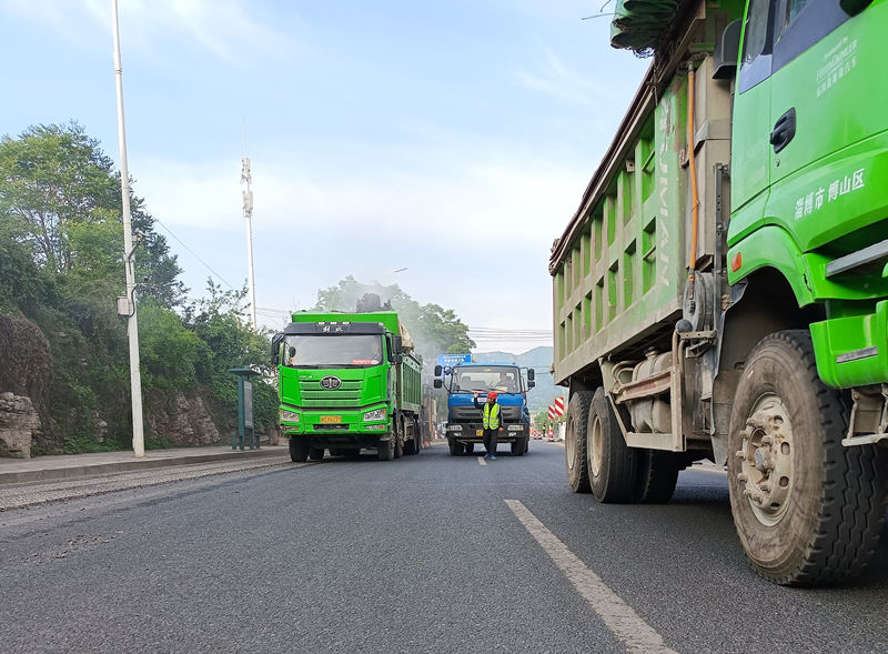 由于G205山深線全線交通壓力大的段落主要集中在博山穿城區(qū)部分,我部接到施工任務(wù)后,迅速與博山公路中心、博山交警大隊(duì)對G205博山境內(nèi)每一處路口封閉情況進(jìn)行了實(shí)地勘察,優(yōu)化交通組織,在泉王路口、博山北立交口、焦莊路口分別設(shè)置導(dǎo)流點(diǎn),進(jìn)行提前分流車輛,經(jīng)過為期兩天的大型車輛分流提示,穿城區(qū)大型車輛明顯減少。
