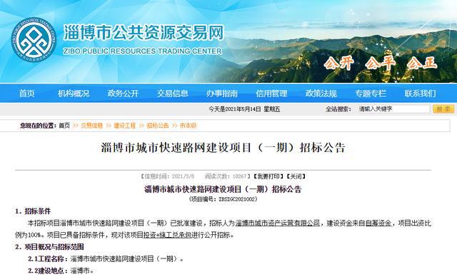 從3月份公示的一份招標(biāo)公告看,淄博快速路網(wǎng)一期工程主要涉及原山大道、魯山大道、昌國路、寶山路、魯山大道這五條路??偼顿Y金額高達(dá)209億元!