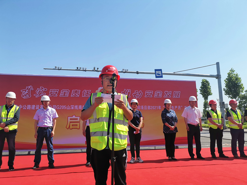 G205項目改建辦項目代表在儀式上提出兩點安全工作要求。一是提高認識,充分認清開展好“安全生產(chǎn)月”活動的重要意義。二是強化活動主題,扎實開展好各項活動,持續(xù)推進安全生產(chǎn)入腦入心、見行見效,轉化為落實安全生產(chǎn)責任的自覺行動,全力維護安全生產(chǎn)形勢穩(wěn)定,為慶祝建黨100周年營造良好安全環(huán)境。