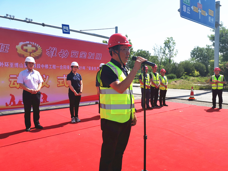 2021年6月4日上午9時,山東魯中公路建設有限公司在G205山深線南外環(huán)至博山萊城界中修工程施工現(xiàn)場組織開展2021年“安全生產(chǎn)月”啟動儀式,改建辦、總監(jiān)辦、公路事業(yè)服務中心及公司主要領導、各分公司代表等共計70余人參加此次活動。
