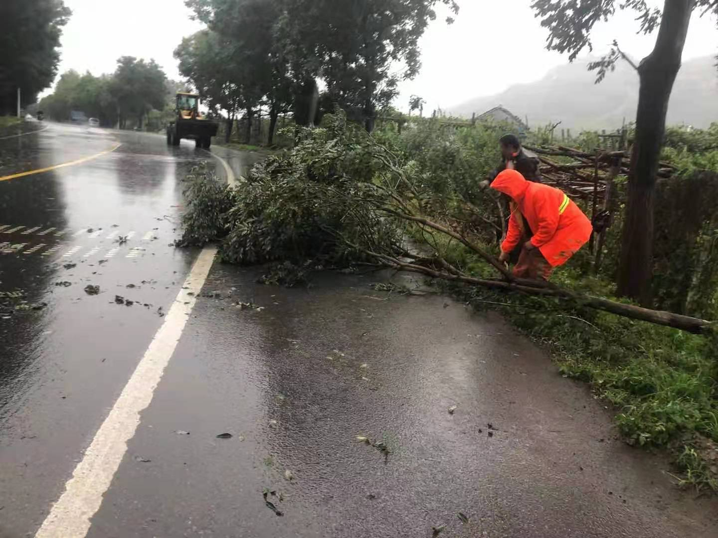 16時(shí)許,天色迅速變暗,狂風(fēng)暴雨來(lái)襲,博山小修所管養(yǎng)的路段S317臨歷線(xiàn)、S231張臺(tái)線(xiàn)、S232張魯線(xiàn)都受到了不同程度的影響,出現(xiàn)了樹(shù)木倒伏、邊溝堵塞等現(xiàn)象。博山小修項(xiàng)目按照應(yīng)急預(yù)案流程迅速向業(yè)主上報(bào)雨情,組織施工隊(duì)伍巡查路況,對(duì)危險(xiǎn)區(qū)域進(jìn)行隔離。疏通并清理沿線(xiàn)排水溝,清理倒伏樹(shù)木、塌方滑坡,保障了道路排水和安全暢通。