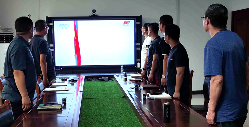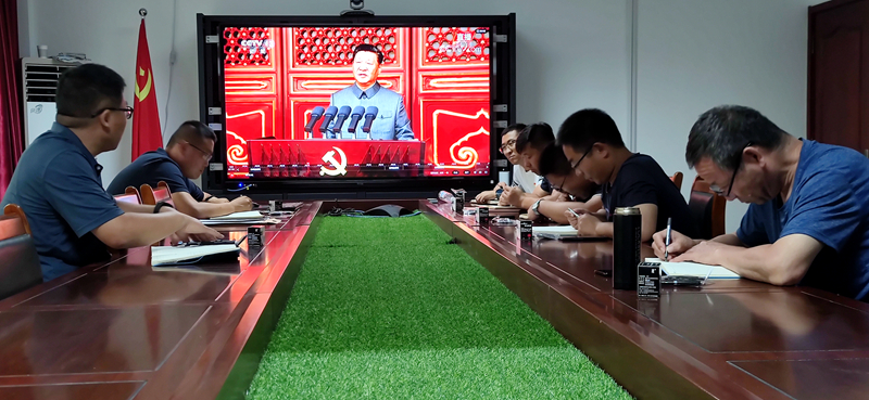 2021年7月1日,山東魯中公路第三工程公司基地三樓會議室,中共魯中公路第三工程公司支部委員會成員,集體與全國9500萬黨員同步收看天安門廣場慶祝中國共產(chǎn)黨成立100周年大會直播盛況,慶祝中國共產(chǎn)黨建黨100周年。聆聽中共中央總書記習(xí)近平講話。百年大黨篳路藍(lán)縷建偉業(yè),重溫中國共產(chǎn)黨百年光輝歷程,中共黨員初心不忘,牢記使命再出發(fā)。