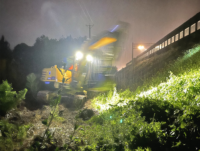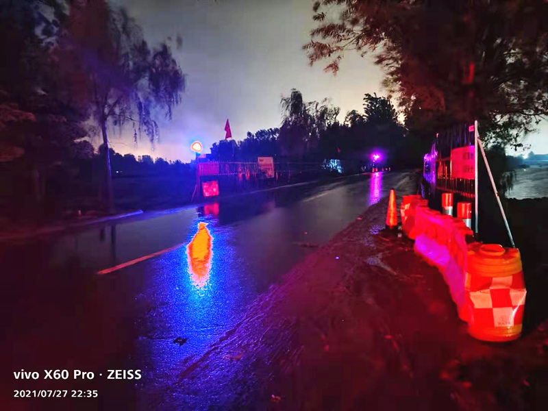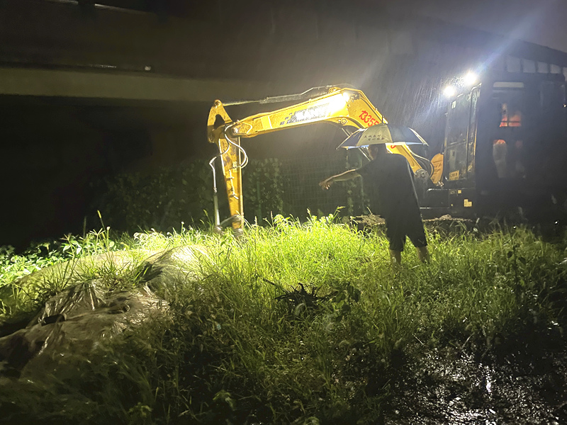 7月28日晚至29日凌晨,各項目按照會議部署分工,迅速展開行動。隨著雨勢增加,部分排水系統(tǒng)出現(xiàn)不同程度的堵塞積水,各負責值班人員及時協(xié)調(diào)挖機及抽水泵,及時對現(xiàn)場情況進行處置。分公司領(lǐng)導靠前指揮,實時對現(xiàn)場情況進行詢問,親自協(xié)調(diào)調(diào)度現(xiàn)場排水情況。值班人員以雨為令,落實值班值守制度,風雨中全力拼搶,保證群眾人身不受傷害、農(nóng)田不被“侵犯”,一整夜,值班人員對現(xiàn)場負責區(qū)域進行盯控排查,每小時對負責區(qū)域內(nèi)情況進行報備,雨水與汗水交融,崗位與職責同在。