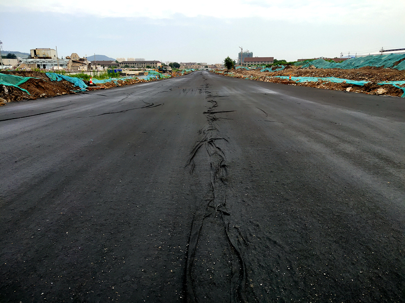 沿河?xùn)|路水穩(wěn)攤鋪嚴(yán)控密實(shí)度平整度
