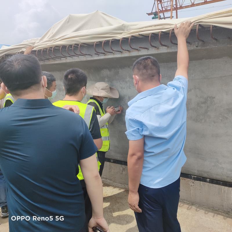 白馬河大橋施工現場,質監(jiān)站朱文芳站長首先聽取了項目人員對郯城G205項目施工的基本匯報,重點講述了白馬河大橋現場施工的相關情況;朱站長對白馬河橋現場安全用電、鋼筋籠墊塊設置等情況進行了檢查指導。在梁場預制場現場,重點查看了箱梁的預制區(qū)、養(yǎng)護區(qū)、存梁區(qū)設置,龍門吊張貼檢驗合格證等情況。隨后檢查組一行人來到項目部駐地對內內業(yè)資料繼續(xù)寧了系統(tǒng)檢查,從安全內業(yè)、施工內業(yè)兩條主線進行了相關指導工作,檢查過程中對照施工日志詢問現場帶班人員施工情況,認真了解工程建設實情。