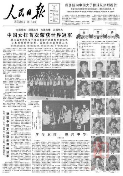次日《人民日報》頭版:《學(xué)習(xí)女排,振興中華——中國贏了》,評論員寫道,“用中國女排的這種精神去搞現(xiàn)代化建設(shè),何愁現(xiàn)代化不能實現(xiàn)?”