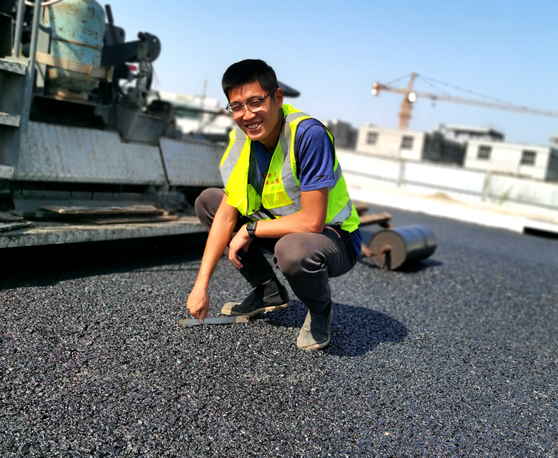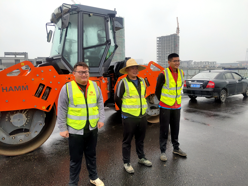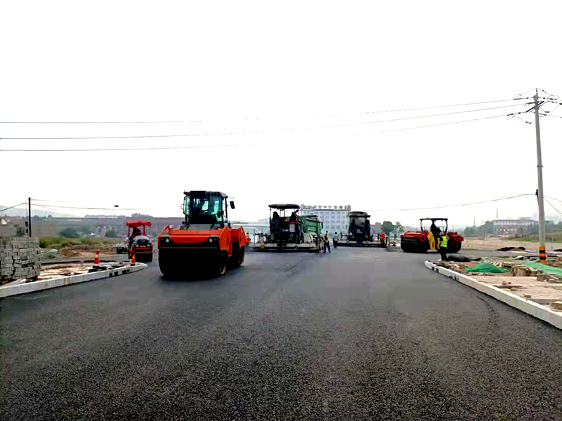第三工程公司第二項目與施工公司節(jié)日堅守施工一線,在博山沿河路路基完成段展開瀝青下面層施工。