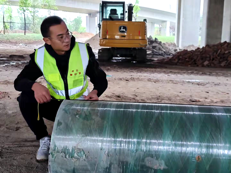 第三工程公司第三項目在雙魯立交橋下展開雨水主線與支線地下管道施工作業(yè)。施工員對進場管道與改裝管道進行測量檢查。