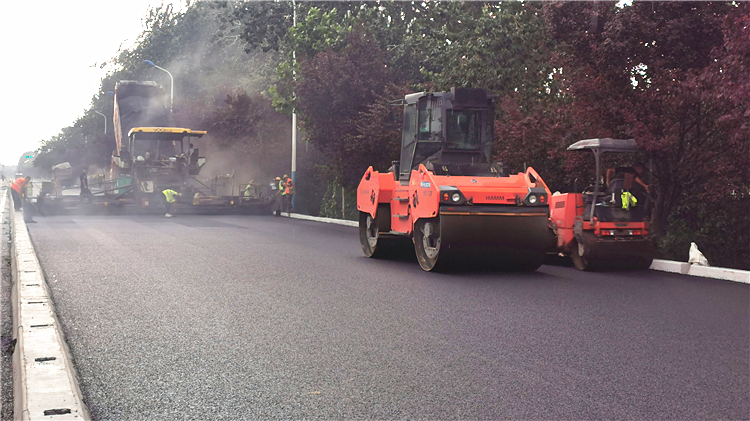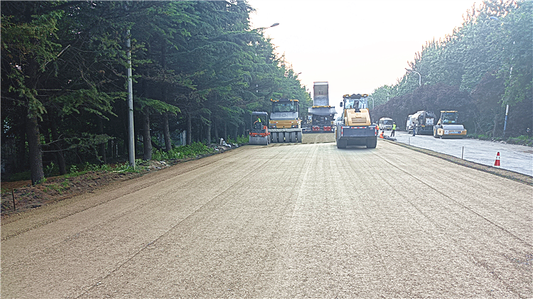 6月23日,全線率先完成瀝青混凝土下面層試驗路段。