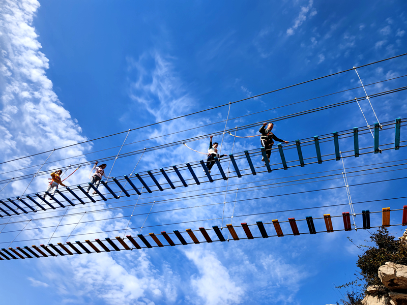 10月23日上午陽光燦爛,山東魯中公路第三工程公司員工與家屬們,沿著山峪林間石徑一路在山村古建筑中穿行而過,一行人一路相互鼓舞拾級盤旋而上經(jīng)玻璃棧道參觀了亞洲最大全琉璃藥師佛像,踏上玻璃懸索橋體驗了一把凌空俯攬群山的樂趣,踩在高空步云橋上感覺自己的自信心嚴(yán)重爆表。齊長城上這邊鼓槌舞動沖鋒的戰(zhàn)鼓擂地震天響,那邊凱旋鑼聲已經(jīng)響徹山谷。穿行棧道,或激流中漂流而下,或溜索飛躍柿巖,或直接就從山間羊腸小道一路小跑凱旋而歸。