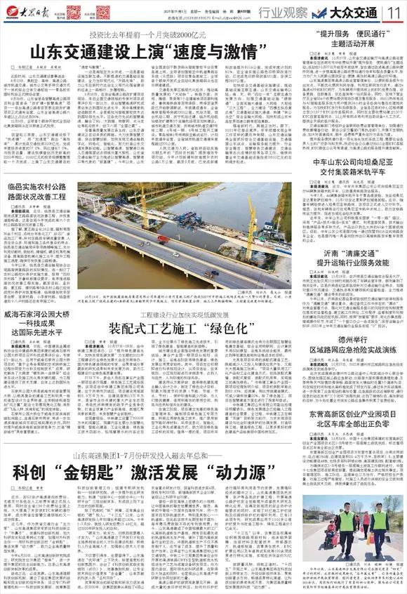 強省新時代,跨越正當時。眼下,2021年已接近尾聲。牢牢把握實現(xiàn)全年工作目標的最后沖刺期,山東交通運輸將全面抓好綜合交通基礎設施、交通強國山東試點、運輸服務能力提升、行業(yè)安全穩(wěn)定、智慧綠色交通建設、交通運輸常態(tài)化疫情防控等各項工作,繼續(xù)向著全年交通基礎設施投資2600億元的目標闊步前進。