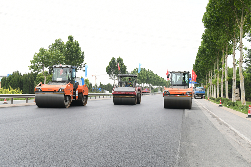 據(jù)了解,項目沿線大小路口近30處,交通形式復(fù)雜,車流量大,特別是博山城區(qū)段,車多路窄,易造成交通擁堵。工期緊、體量大、任務(wù)重,如何滿電量加速?