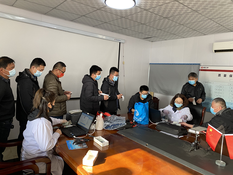2022年3月9日上午,一輛載滿溫暖和關(guān)愛的溫馨巴士緩緩駛?cè)肱R沂分公司郯城綜合場(chǎng)站,來自淄博市職業(yè)病防治醫(yī)院的醫(yī)護(hù)工作者們?yōu)檑俺琼?xiàng)目的施工人員進(jìn)行專業(yè)的年度體檢工作,臨沂分公司和機(jī)械化施工公司近60位員工參加此次體檢。當(dāng)施工人員收到體檢車要進(jìn)項(xiàng)目體檢通知的時(shí)候,大家喜悅的心情溢于言表,省去了來回折返的時(shí)間成本,實(shí)現(xiàn)了在“大門口”就能體檢。