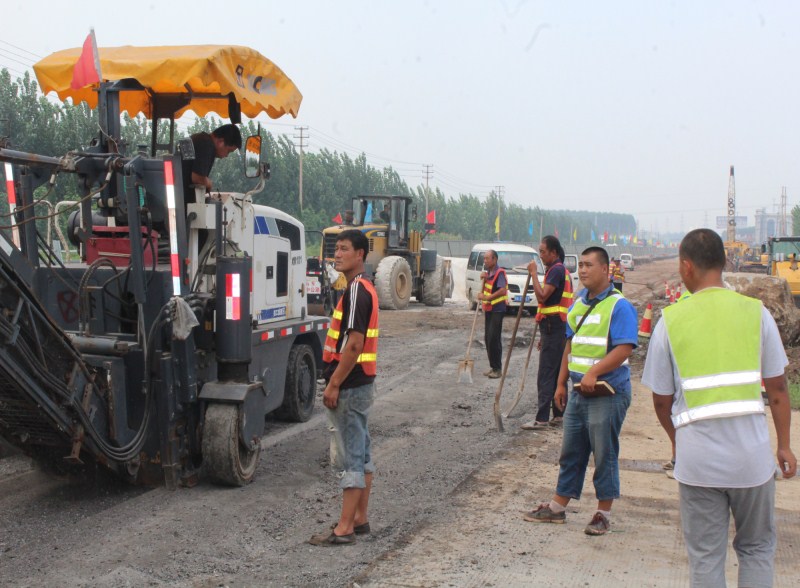 路總是從無到有,每天睜眼一看又有了新變化。路基團(tuán)隊在道路初建之時,從沒白沒黑的清表、挖填、整平、攪拌、碾壓灑掃。待到石灰土層層驗收后就又匆匆奔向新的起點。這中間的愁、苦、辛、勞仿佛是在彈指一揮間而已。宋希偉帶領(lǐng)著郭碩、魏濤、趙洪岳、于景民、張曉文這些施工員每天轉(zhuǎn)戰(zhàn)在挖掘機(jī)、銑刨機(jī)、推土機(jī)、沖擊碾壓、液壓夯、壓路機(jī)、平地機(jī)、路拌機(jī)、運(yùn)輸車和施工隊之間,抱著本子測量、打點、放線、統(tǒng)計、開報表.....每天從早5點到后半夜連軸轉(zhuǎn),辦公室輕易見不到人,電話一打往往是正在通話中,有事找他們最好的辦法就是到工地到現(xiàn)場,一準(zhǔn)能找到一臉嚴(yán)肅的宋希偉,咧著嘴似笑似不笑的郭碩,一本正經(jīng)正在指揮施工的趙洪岳,整天嘻嘻哈哈的于景民和看著與年紀(jì)不符的張曉文,張嘴就是:“黃主任有水嗎,我水都喝光了。”再就是:“有事嗎?沒事我忙去啦。”