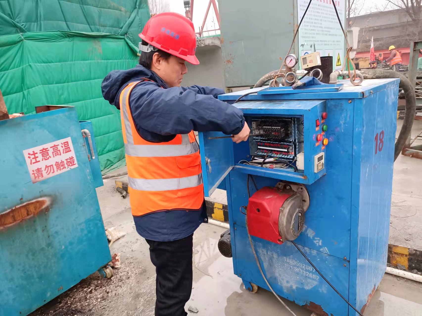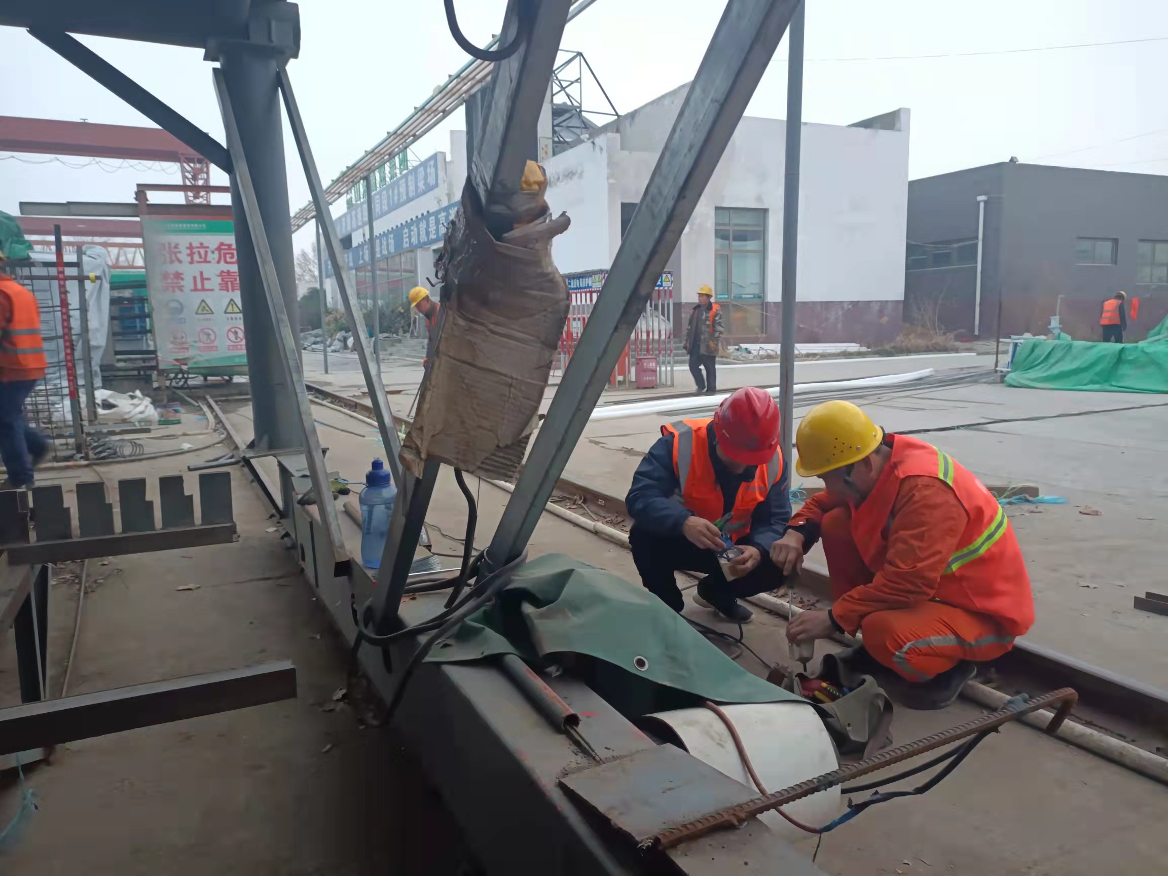 在高軍、徐立貞、齊振國帶隊(duì)下,對全場龍門吊、配電箱、職工宿舍用電、鋼筋加工設(shè)備、砼拌合站進(jìn)行了統(tǒng)一檢修。