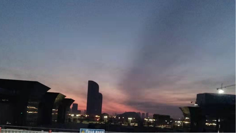 這張照片是2018年1月24日,從淄博到江西贛州出差。當時淄博到贛州沒有直達的高鐵,需要從濟南西站轉(zhuǎn)車。當我到濟南西站時,已經(jīng)是早晨6點48分,下了出租車,看到東方太陽的晨輝已經(jīng)染紅了地平線,一縷淡淡的黑云猶如太陽的翅膀在天空的正中央伸向遠方,感嘆于景色的同時,并拿起手機記錄下。
