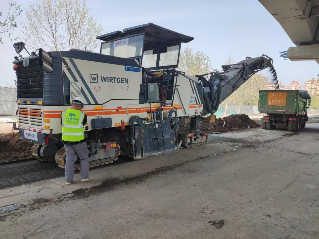 4月10日,機(jī)械化施工公司銑刨機(jī)進(jìn)場(chǎng),展開主路面層銑刨工作。根據(jù)快速路高架橋需求,兩側(cè)各 11m 寬機(jī)動(dòng)車道保留,進(jìn)行病害處理、銑刨4cm 瀝青面層后罩面利用。保留兩側(cè)分隔帶、兩側(cè)輔路銑刨并罩面利用,現(xiàn)狀人行道翻建。高架橋增設(shè)進(jìn)出口匝道段落、占用現(xiàn)狀兩側(cè)分隔帶、輔路的,對(duì)兩側(cè)分隔帶、輔路進(jìn)行相應(yīng)加寬改造、占用人行道部分,在外側(cè)新建人行道。