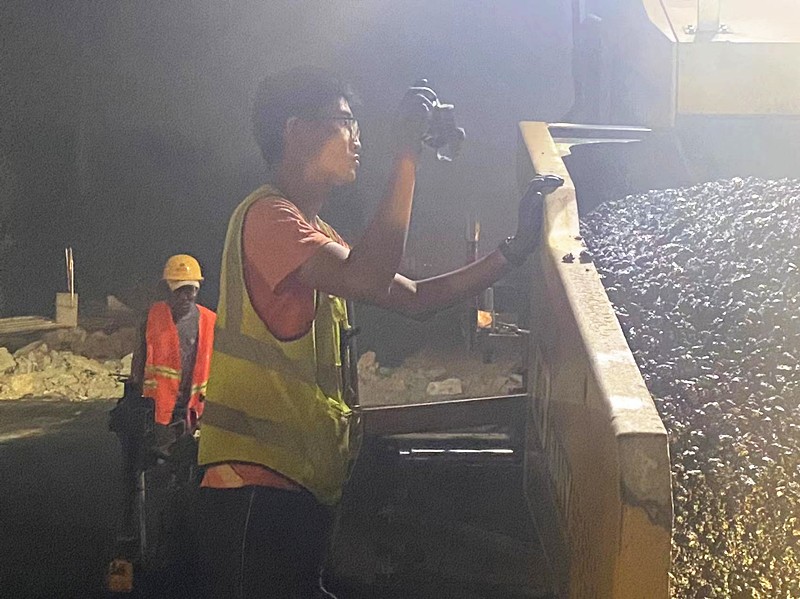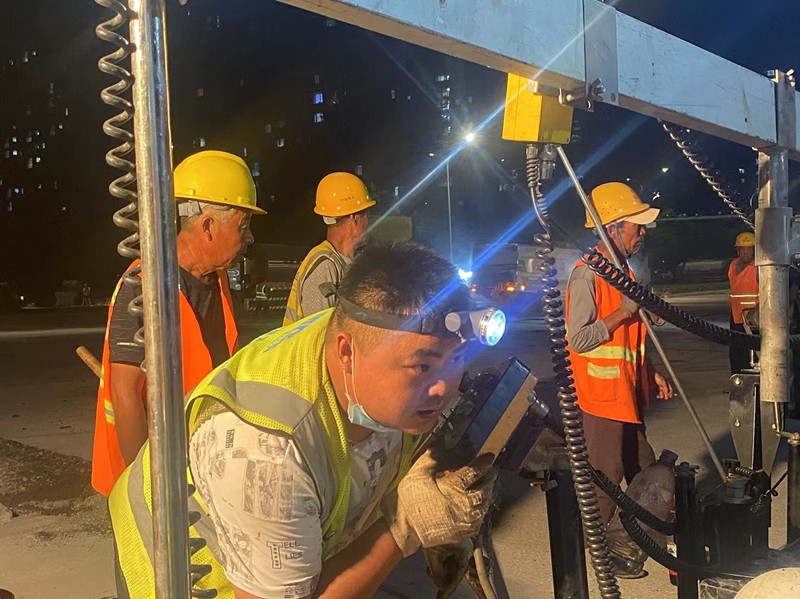 5月28日凌晨4點(diǎn),昌國(guó)路西八路路口施工現(xiàn)場(chǎng)依舊忙碌,現(xiàn)場(chǎng)20多名工作人員已連續(xù)作戰(zhàn)24小時(shí),連日的高溫加上高達(dá)170℃的攤鋪瀝青,讓整個(gè)施工現(xiàn)場(chǎng)籠罩在氤氳中。料車傾倒下新鮮的熱瀝青,攤鋪機(jī)隨后沉穩(wěn)的梳理著,幾名施工人員有指揮設(shè)備的有現(xiàn)場(chǎng)安全防護(hù)的,有拿鋼尺測(cè)量厚度的,有用鐵鍬把不均勻的地方填補(bǔ)均勻的,壓路機(jī)輪番碾壓,遠(yuǎn)遠(yuǎn)望去,如海市蜃樓般的虛幻。昌國(guó)路西八路路口是淄博最繁忙的幾條道路之一,白天車流量太大,不能封道作業(yè),第二天又是周末假期,所以采用“全時(shí)全域飽和施工”,整個(gè)作業(yè)面,人員裝備都是要滿負(fù)荷的。他們不寐不休,從27日早4:00至28日凌晨6:00,吃喝都在工地,“鐵人”般的工作作風(fēng)被監(jiān)理、業(yè)主紛紛點(diǎn)贊。收工時(shí),于景民、任慶波、黃保同等多名員工才發(fā)現(xiàn)自己的腳上已滿是瀝青燙起的水泡,正常走路都是鉆心的疼,旁人都不忍心多看幾眼,他們卻還在彼此開(kāi)著玩笑,“為什么干活時(shí)不疼,難道干活時(shí)有神甲護(hù)身?”玩笑的背后是奉獻(xiàn),“神甲”的背后是執(zhí)念,皮實(shí)的背后是強(qiáng)大的執(zhí)行力和對(duì)魯中公路強(qiáng)烈的歸屬感。