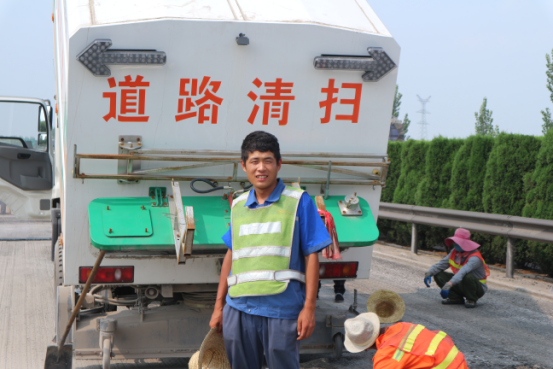 恪盡職守、一絲不茍的道路清掃“專家”李帥。