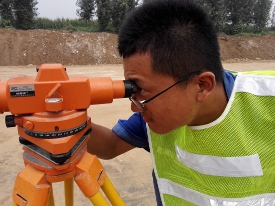 雖然臉上已滿是汗珠,但目光依然堅定的測量員魏濤。