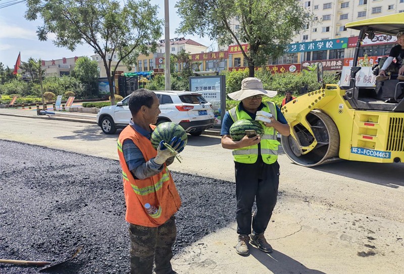 為一線施工人員和機(jī)械操作人員送去西瓜、藿香正氣水等防暑物資