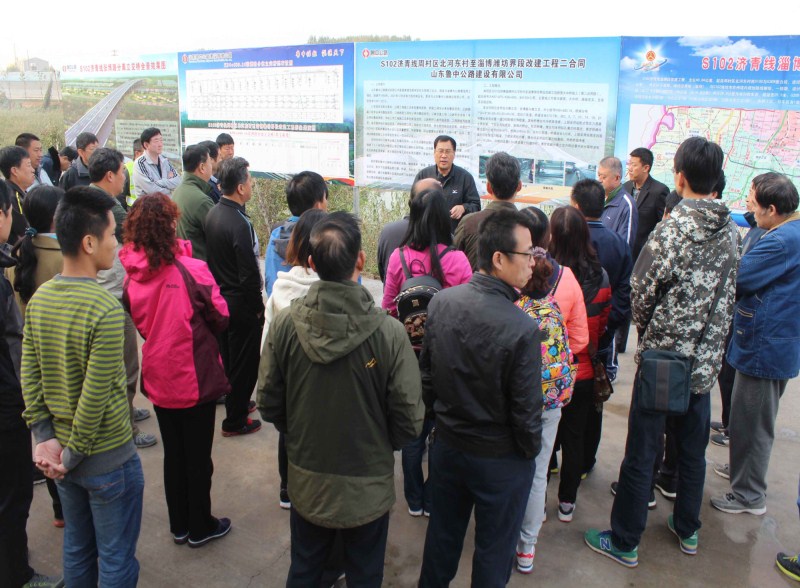 10月28日上午,淄博市交通局黨委書(shū)記、局長(zhǎng)翟乃利,淄博市公路局局長(zhǎng)王興及交通局其他領(lǐng)導(dǎo)分乘中巴車來(lái)到我公司參建的省道S102項(xiàng)目工地進(jìn)行實(shí)地調(diào)研。市重點(diǎn)工程辦公室謝國(guó)木首先向在場(chǎng)領(lǐng)導(dǎo)介紹了工程設(shè)計(jì)思路及建設(shè)的相關(guān)情況。