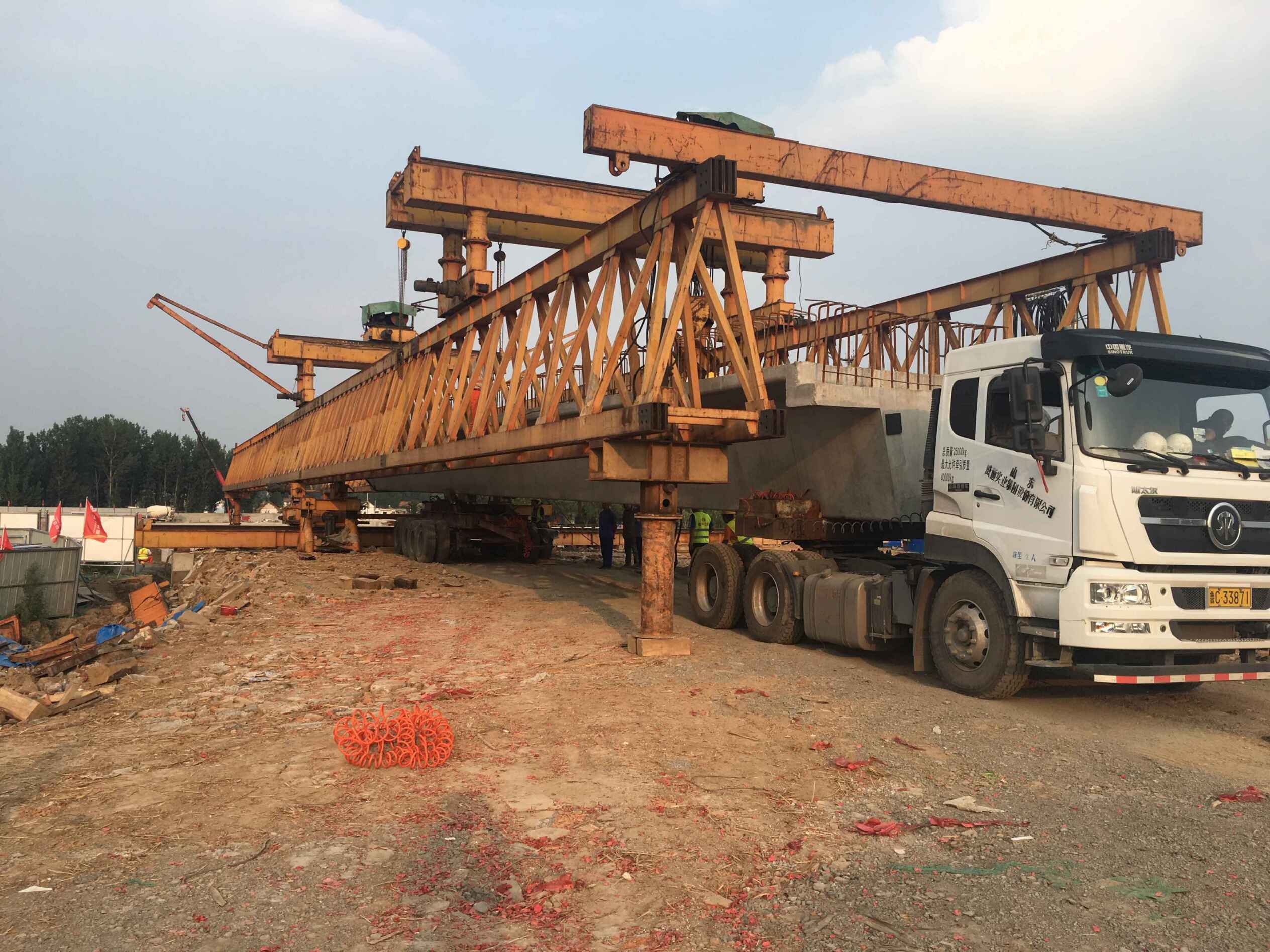 為確保架梁施工安全,項(xiàng)目部精心制定施工方案。同時(shí),在架梁機(jī)械驗(yàn)收合格后多次對(duì)其進(jìn)行檢查,對(duì)作業(yè)人員進(jìn)行班前教育,做好交底,制定應(yīng)急預(yù)案,保證了整個(gè)架梁過(guò)程安全、高效。隨著架梁設(shè)備有節(jié)奏的完成一項(xiàng)項(xiàng)動(dòng)作,襯墊、落勾、試吊、起吊、推進(jìn),在一串協(xié)調(diào)而又連貫的運(yùn)作之后,人民路延伸工程孝婦河橋第一片梁板穩(wěn)穩(wěn)降落在它發(fā)揮作用的位置上。