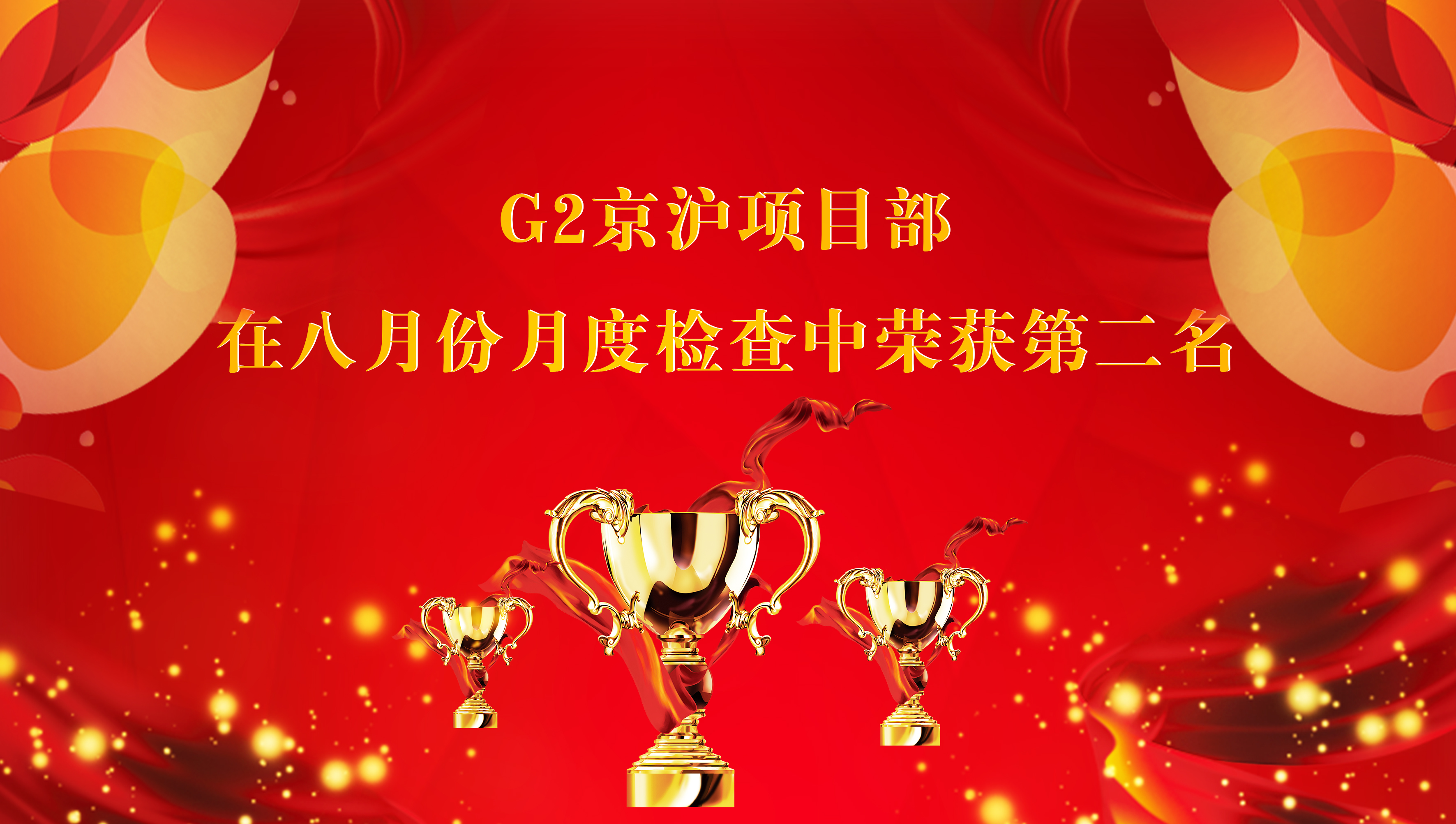 G2京滬項目部獲得八月份月度綜合檢查第二名