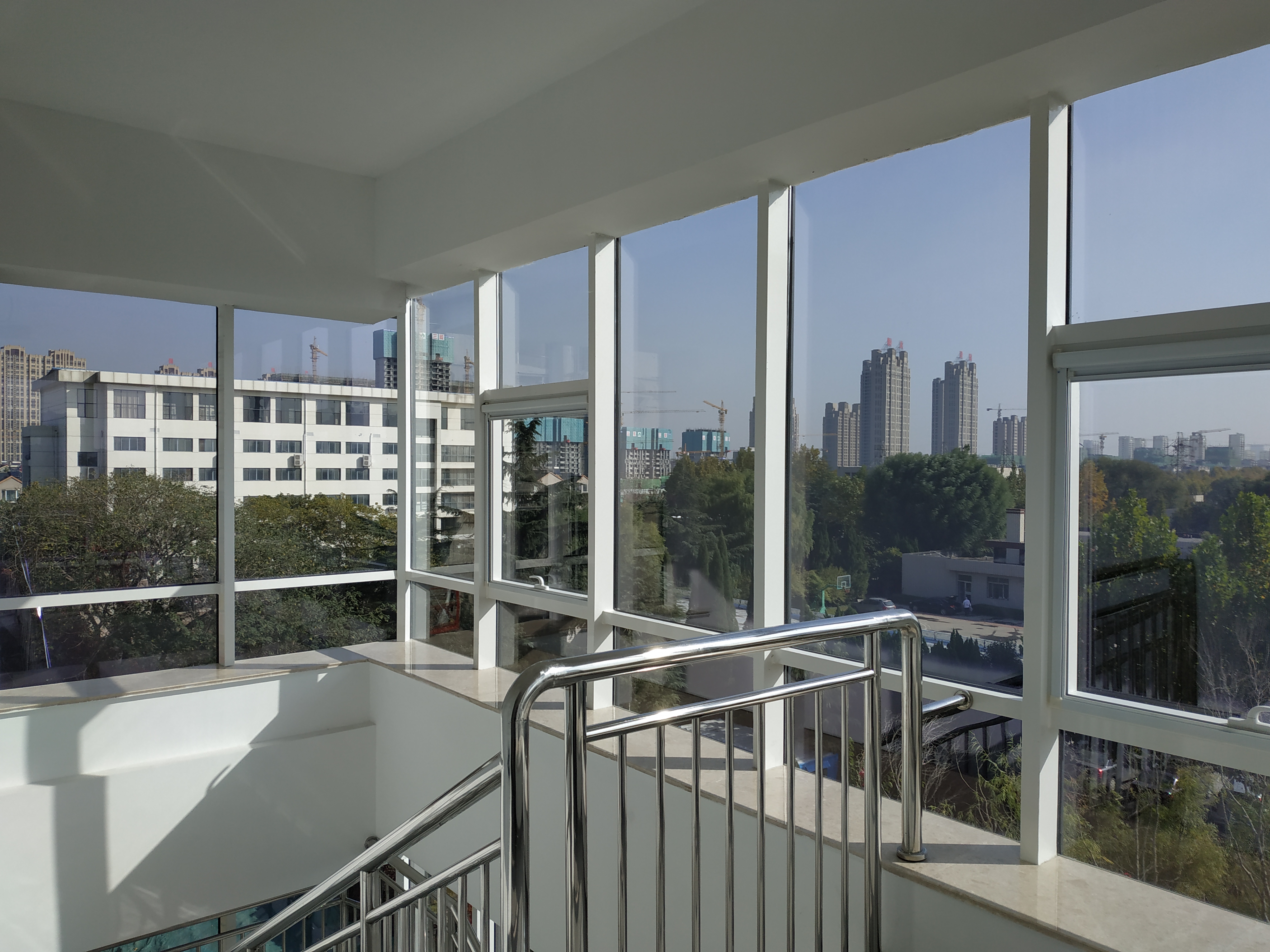 市政檢測樓(2#)內(nèi)窗鋁合金型材設(shè)隔熱斷橋,玻璃選用Low-E中空玻璃。