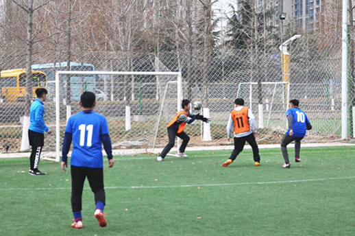 比賽當中,各參賽隊伍秉承“友誼第一、比賽第二”的原則,服從裁判、遵守規(guī)則,堅持以球會友,上演了一個又一個精彩的射門,隊員們奮力拼搶,積極撲救,使得比賽高潮疊起。盡管天氣寒冷,但無論是運動員還是啦啦隊都難掩熱情,賽場上掌聲、喝彩聲連綿不斷,整個球場都歡呼雀躍。