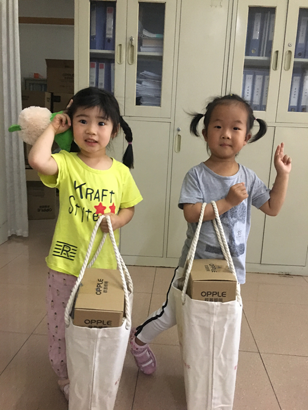 今年公司打破按年齡段為孩子們選購禮物的慣例,按家庭中孩子的個數(shù)來準(zhǔn)備禮物,一是讓孩子們學(xué)會分享,二是從實用角度來選定禮物。今年的六一禮物有九檔觸控選擇的歐普護(hù)眼臺燈、有人體感應(yīng)的電子鬧鐘、有活力與情懷并重的紅雙喜羽毛球拍,有印著卡通形象可以方便孩子們拎的亞麻手提袋,還有公司人力資源部為每個孩子手寫的六一賀卡。拿到禮物孩子們開心的笑顏是對公司最幸福的回饋。