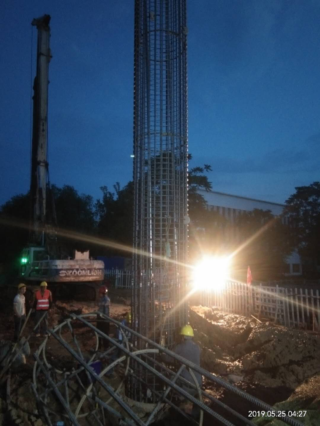 剛開工時,老城區(qū)地下管線錯綜復(fù)雜,探溝開挖困難重重。澇淄河橋下電纜、國防、污水、雨水更是相互交錯,現(xiàn)場一探再探,設(shè)計變更一變再變,歷時將近一個月。因工程在城區(qū)中心,東二路交通難以封閉,項目部多次與監(jiān)理、業(yè)主以及交警溝通封閉交通方案,考慮了種種因素未能成功實施。在這種情況下,由于工期緊、任務(wù)重,運輸車只能夜晚裝車外運,澇淄河橋只能夜深人靜,車流量、人流量稀少的時候進(jìn)行樁基施工,現(xiàn)場人員連續(xù)一個多月夜晚加班至凌晨。