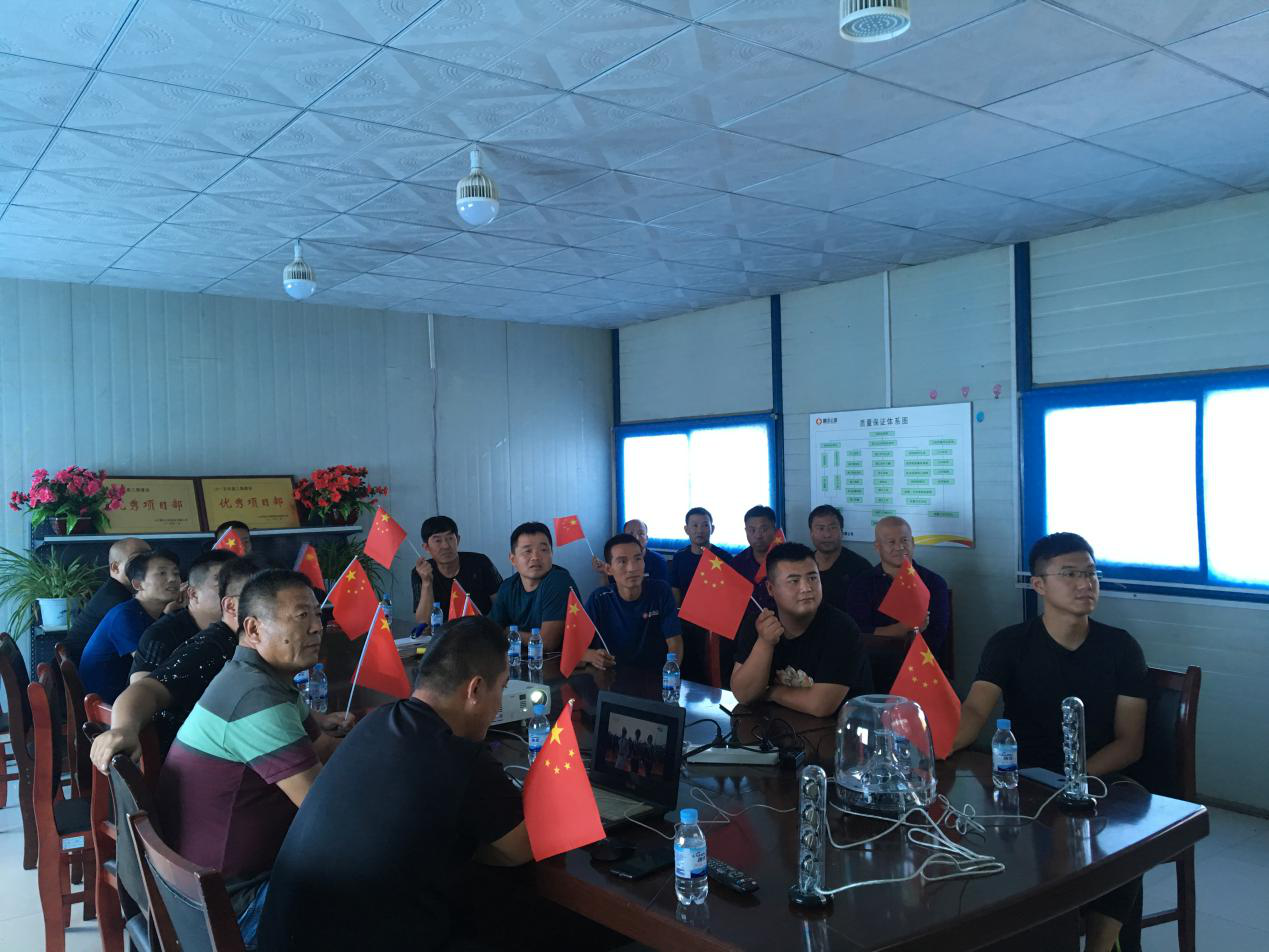 2019年10月1日上午8時(shí),魯中公路市政工程分公司通過集中觀看或電視、手機(jī)、網(wǎng)絡(luò)等形式,收看關(guān)注慶祝大會(huì)和閱兵盛典。淄川拌合站會(huì)議室大屏幕前,擠滿了手拿國(guó)旗的員工,他們以這種方式在魯中公路工作崗位上與全國(guó)人民一起為祖國(guó)慶祝建國(guó)70周年華誕。