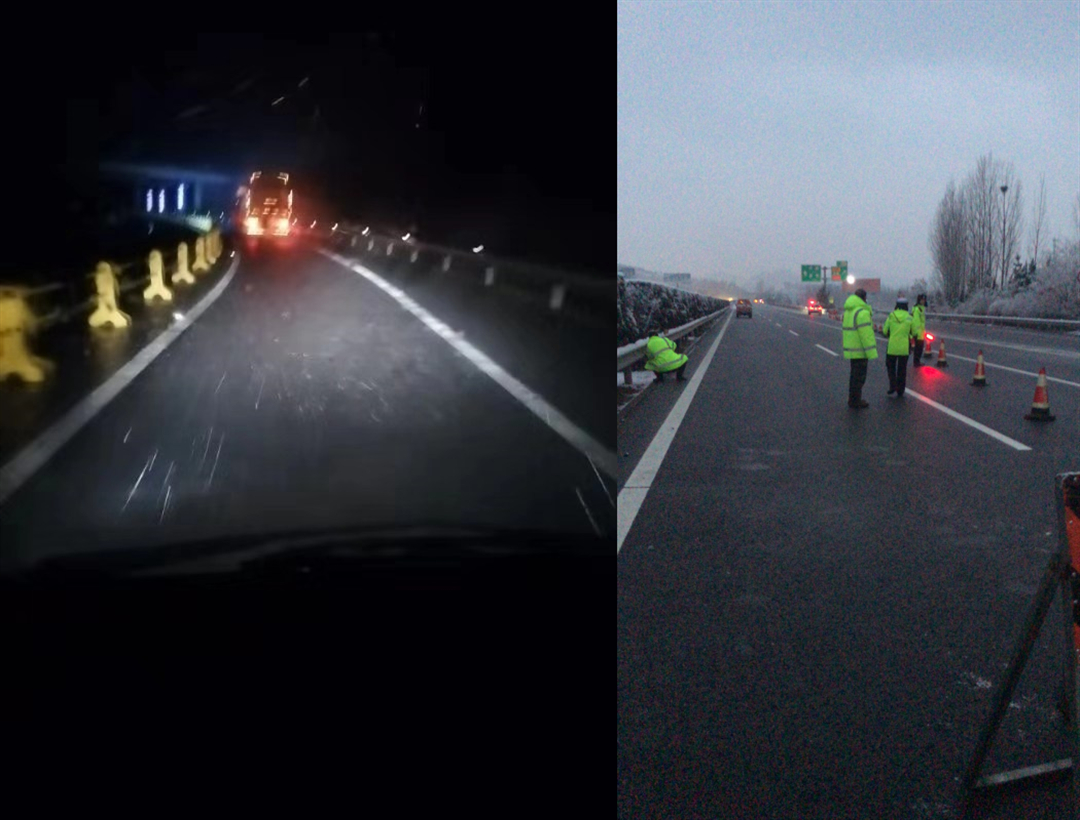 與此同時(shí)我們青蘭小修的工作人員便開始進(jìn)入了應(yīng)急模式,對積雪的路面進(jìn)行清理和對路面灑融雪劑的作業(yè),為了防止在高速上因路滑發(fā)生意外,所有工作人員全部都爭分奪秒的進(jìn)行著工作。