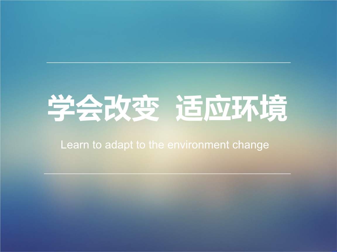 首先適應(yīng)“改變”是一種接受的過程:變化萬千的環(huán)境中,不可能一成不變。不接受競爭日益激烈的現(xiàn)狀,個人是永遠(yuǎn)得不到進(jìn)步的。接受是一種姿態(tài),是一種個人敢于面對的精神體現(xiàn)。所以適應(yīng)改變就要先接受改變,接受才可以談及如何面對,這種接受只能是主動的樂觀的,被動的悲觀的接受現(xiàn)狀會寸步難行。