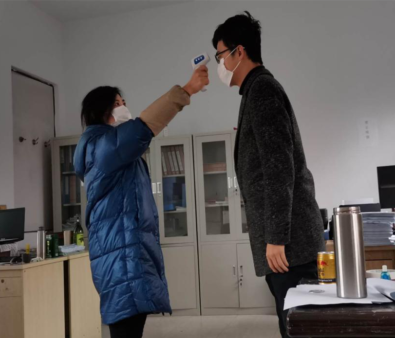 建立職工健康臺賬,每天早晚兩次測量體溫記錄建檔。單位入口設立檢查點,外來人員必須佩戴口罩,測量體溫并詳細登記外來人員信息;每天上班前集中消殺,重點對辦公區(qū)域、會議室、門把手、垃圾桶等進行消毒;減少不必要的會議,盡量使用視頻或者電話會議,需要集中開會時,參會人員必須佩戴口罩,交流保持在1米以上距離,會議時間不超過30分鐘。食堂用餐實行錯峰用餐制度,避免病毒的交叉感染。