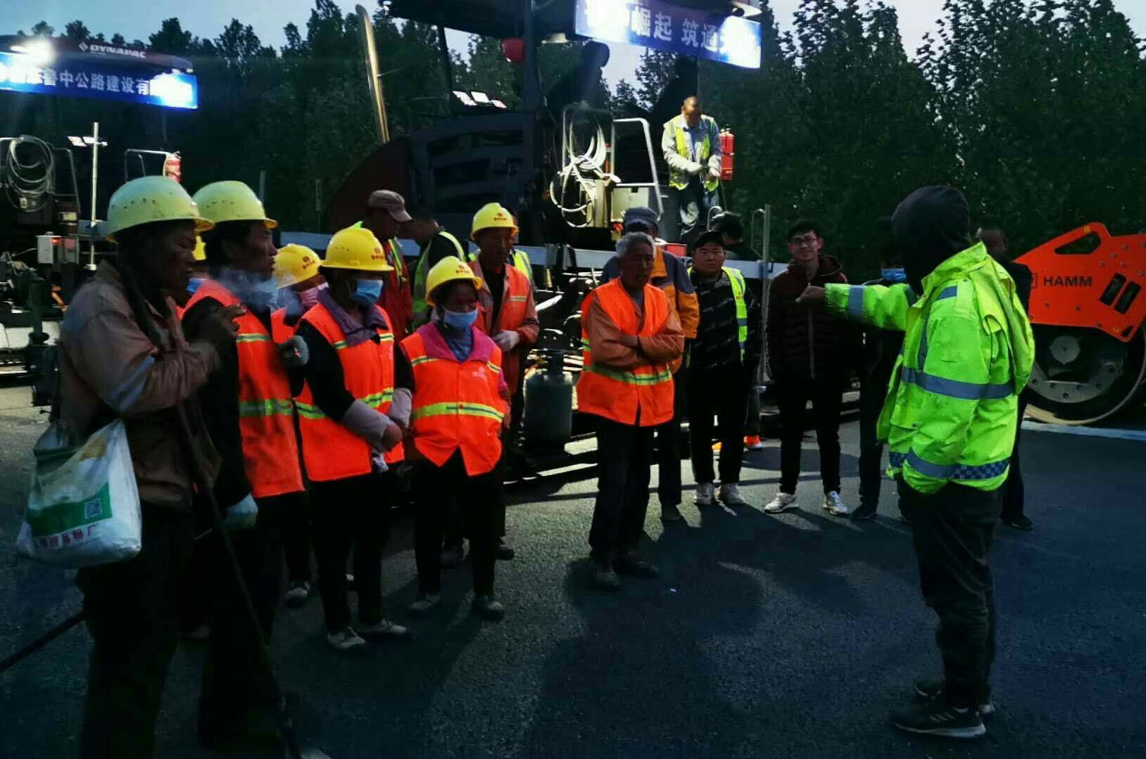 安全生產(chǎn)是永恒的主體,凌晨4:00瀝青拌合站操作工王志成開(kāi)機(jī)前對(duì)工人做安全技術(shù)交底。