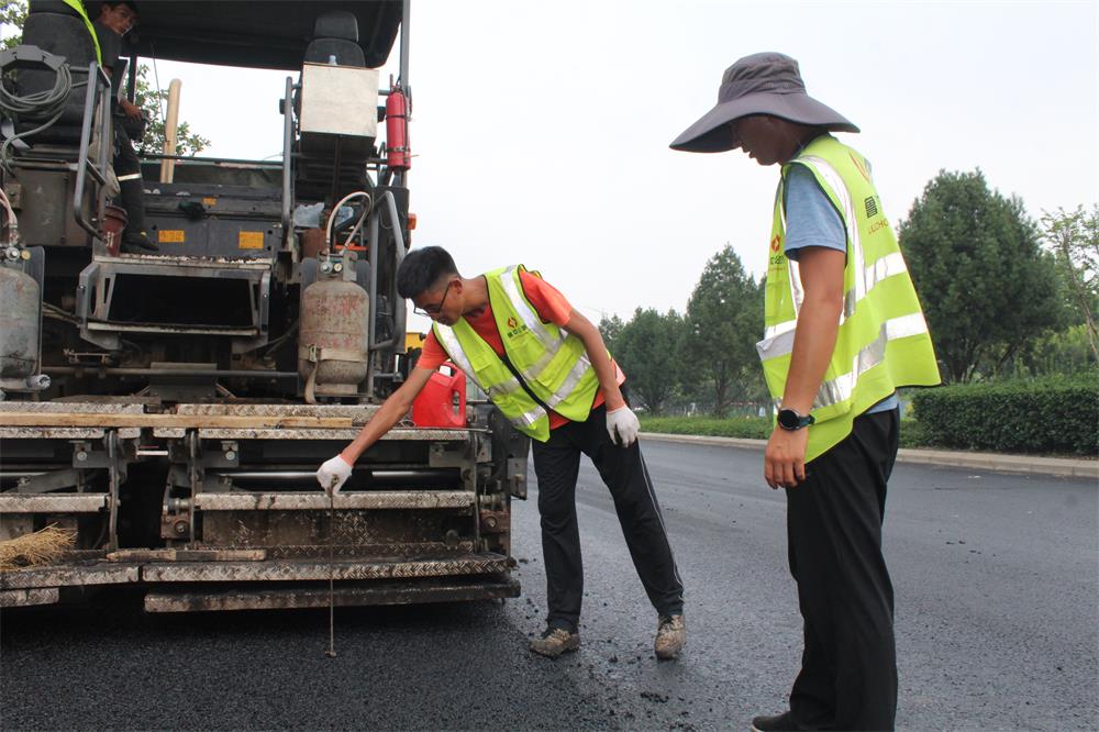 山東魯中公路第三工程公司瀝青施工隊(duì),是一群由經(jīng)驗(yàn)豐富的老員工與年輕技術(shù)員搭配組成的施工隊(duì)伍。2020年8月氣溫高于往年,瀝青工程隊(duì)?wèi)?zhàn)高溫斗酷暑,對(duì)年輕的隊(duì)伍來(lái)說(shuō)那就不能不算是個(gè)事。瀝青路面施工隊(duì)以品質(zhì)立命,看似簡(jiǎn)單瀝青路面密實(shí)、平整、順、滑、無(wú)積水的要求,卻無(wú)不透出對(duì)瀝青攤鋪施工的高標(biāo)準(zhǔn)嚴(yán)要求……
